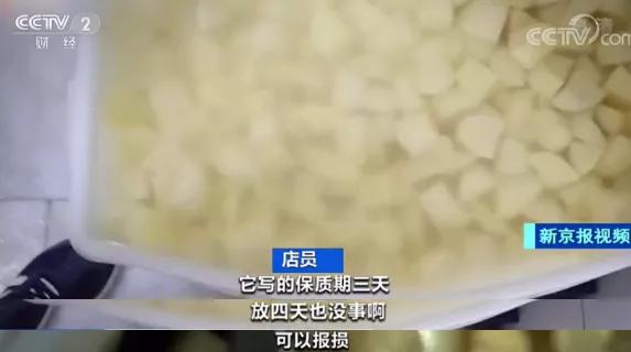 除了螃蟹,调查发现,这家连锁餐厅消耗量最大的配料——土豆也存在问题。6月29日晚上,在胖哥俩北京合生汇店,记者发现生产日期为6月27日、保质期3天的去皮土豆,第二天即将过期,不过店员却没有按规定将土豆做报废处理。而是将上百斤即将过期的土豆拆了包装,剁成块状。记者发现,这些过期的土豆,很多已经发黑变质。