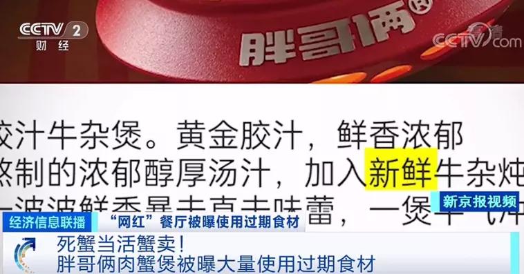 死蟹当活蟹卖!胖哥俩肉蟹煲被曝大量使用过期食材